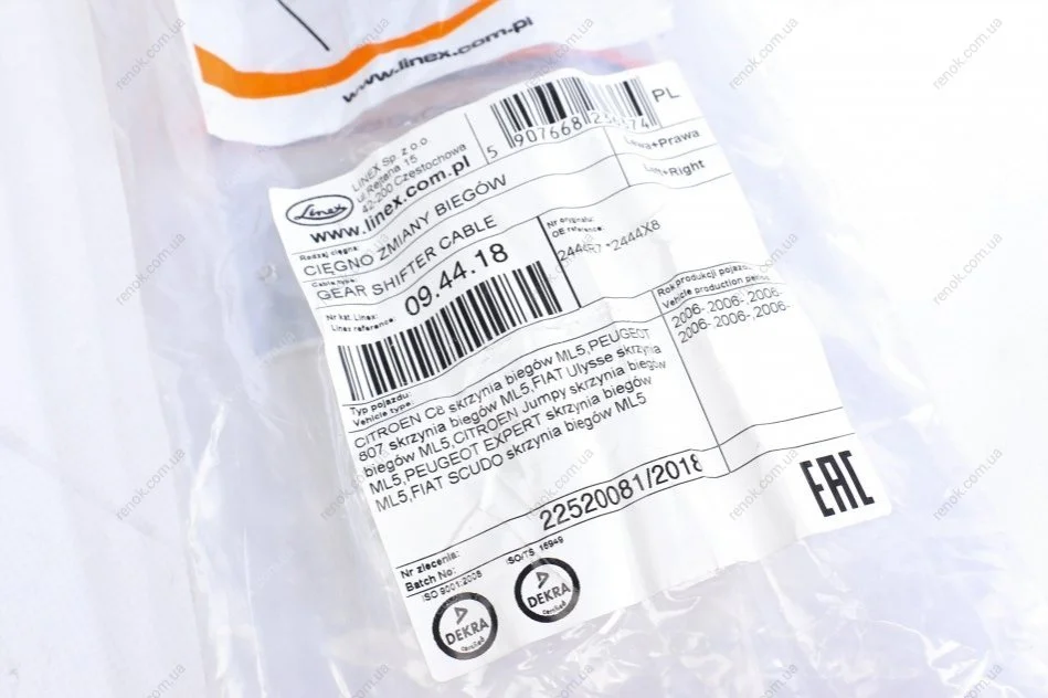 Трос куліси Citroen C8/Jumpy/Peugeot 807/Expert 06- (1000/1030 мм) LINEX 09.44.18 (2444R7, 2444X8)