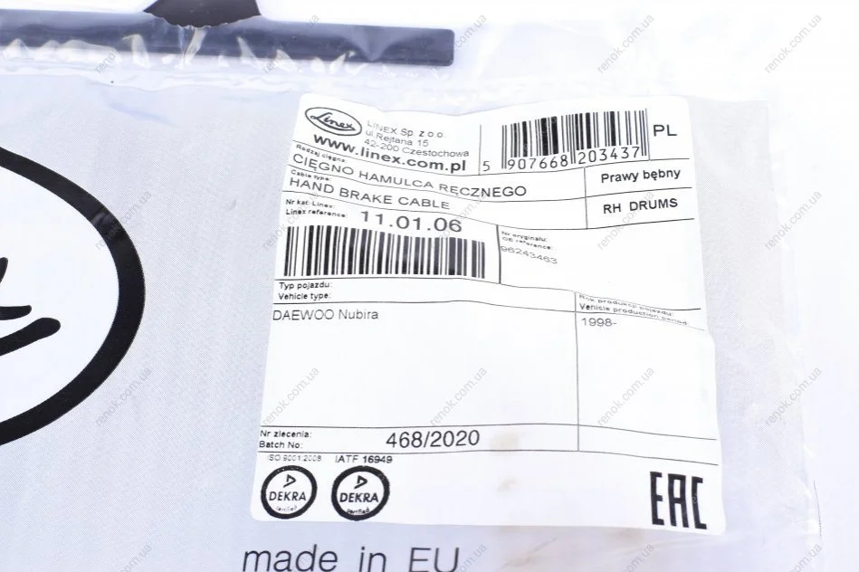 Трос ручного гальма LINEX 11.01.06 (96243463)