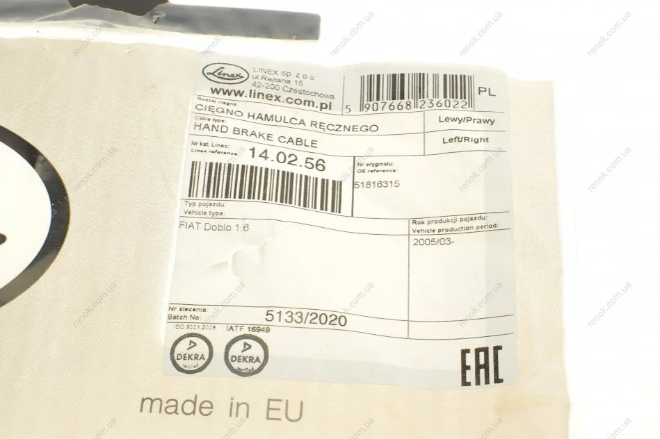Трос ручного гальма LINEX 14.02.56 (51816315)