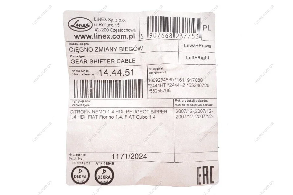 Трос куліси Citroen Nemo/Peugeot Bipper 08- LINEX 14.44.51 (1609234880, 2444HT, 2444HZ)