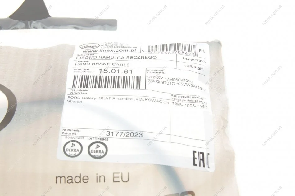 Трос ручного гальма LINEX 15.01.61 (7M0609701B, 7M3609701C, 95VW2A603AC)