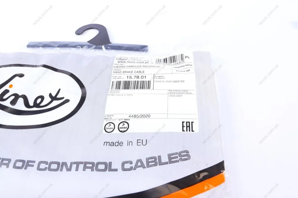 Трос ручника (задній) Ford Focus/C-Max 03-07 (1353+1504mm) (електро) LINEX 15.78.01 (1424478, 3M512B681BB)