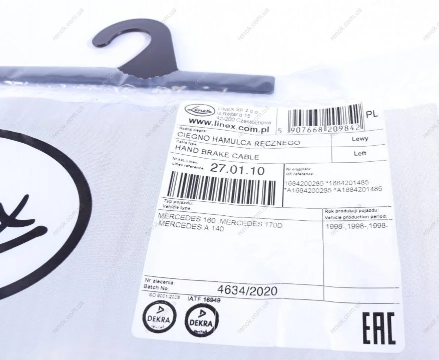 Трос ручного гальма LINEX 27.01.10 (1684200285, 1684201485, A1684200285)