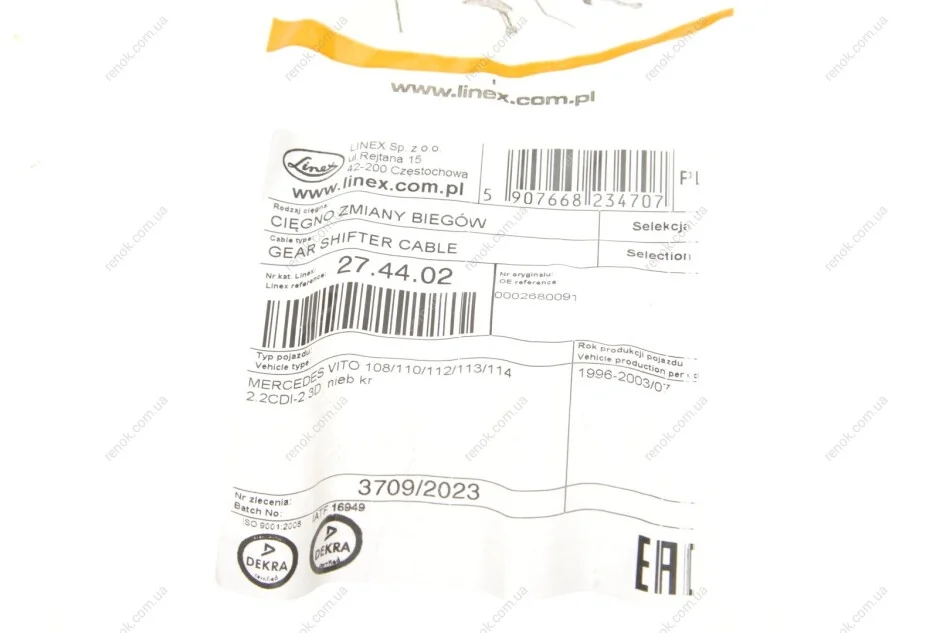 Трос куліси MB Vito (W638) 96-03 (L) (сірий) LINEX 27.44.02 (0002680091)