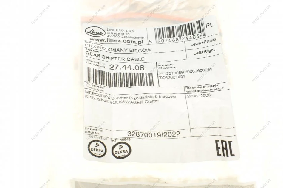 Трос куліси MB Sprinter 906 2.2CDI/VW Crafter 2.5TDI 06- LINEX 27.44.08 (9062600051, 9062601451, 2E1321308B)