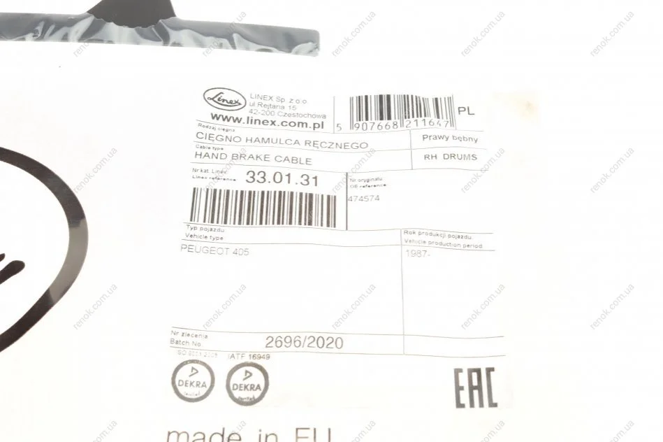 Трос ручного гальма LINEX 33.01.31 (474574)