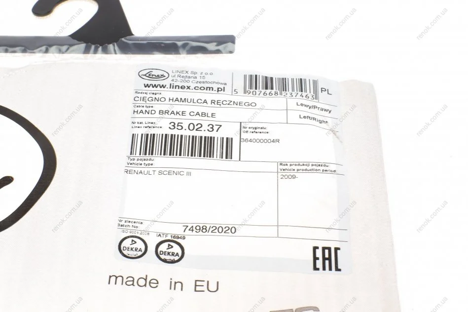 Трос ручного гальма LINEX 35.02.37 (364000004R)