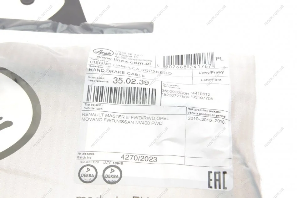 Трос зупиночних гальм LINEX 35.02.39 (3653000Q0H, 4419612, 8200727569)