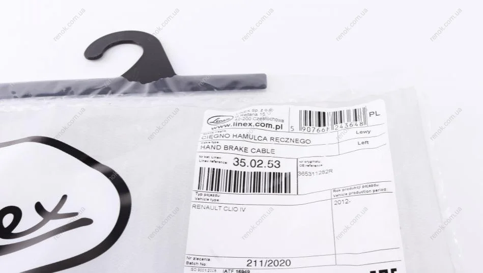Трос ручника (задній) (L) Renault Clio IV 12- (1486/1309mm) LINEX 35.02.53 (365311282R)