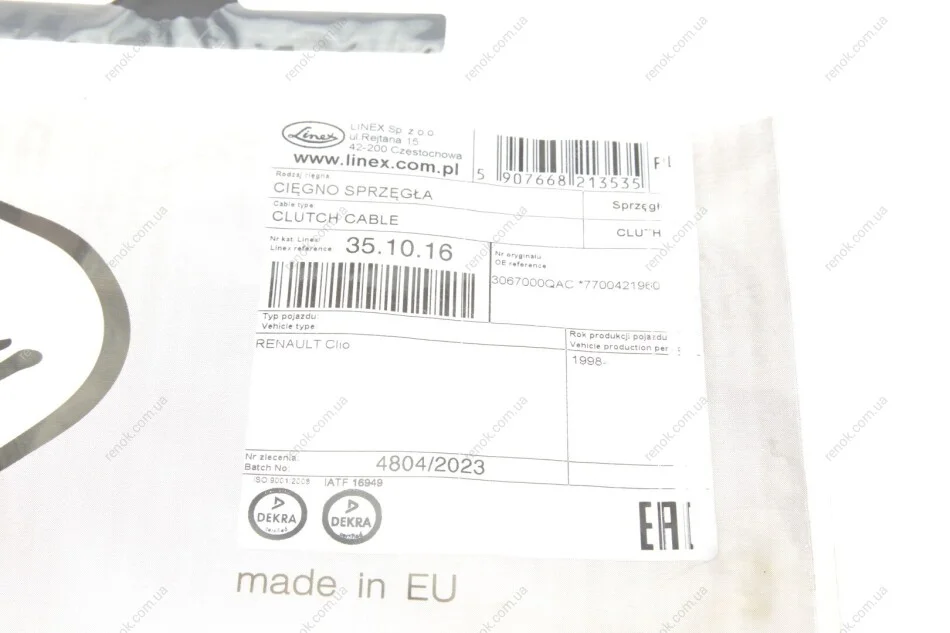 Трос зчеплення Renault Kangoo 1.2/1.4i/1.9D 98- (935/565) LINEX 35.10.16 (7700417050, 7701421960, 3067000QAC)