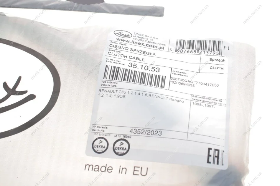 Трос зчеплення Renault Kangoo 1.2/1.4/1.6i/1.9D (960x670) LINEX 35.10.53 (7700417050, 306700QAC, 8200694035)