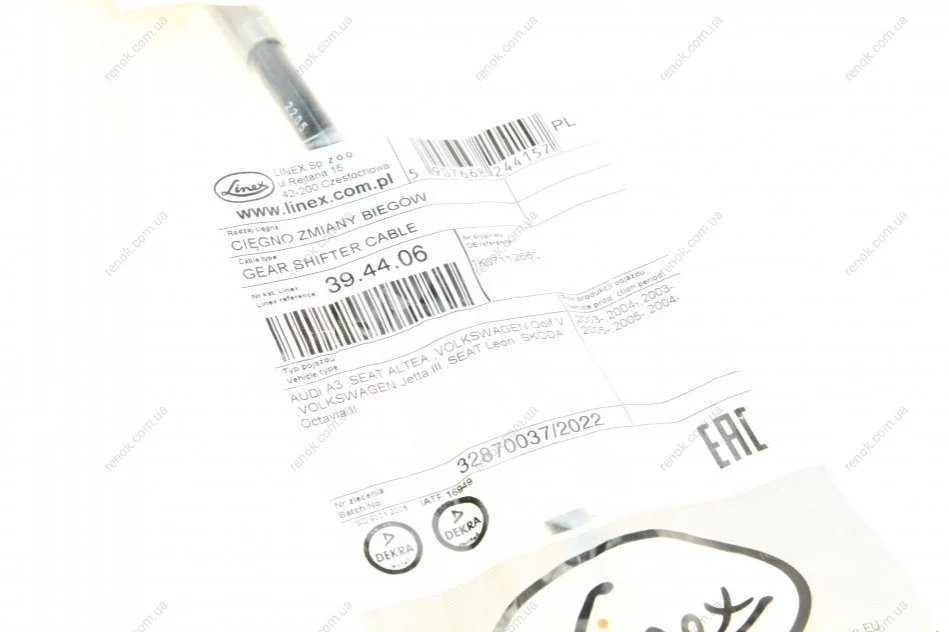 Трос куліси Audi A3/Skoda Octavia/VW Golf V/VI 03- (1106mm) (L) LINEX 39.44.06 (1K0711266Q)