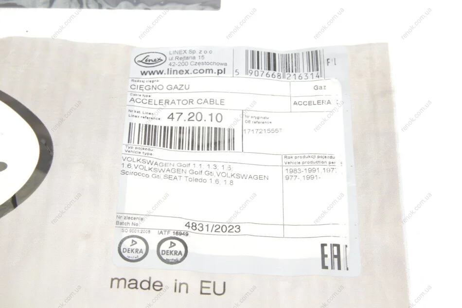 Трос газу VW Golf I/II 77-/Passat 88- LINEX 47.20.10 (171721555T)