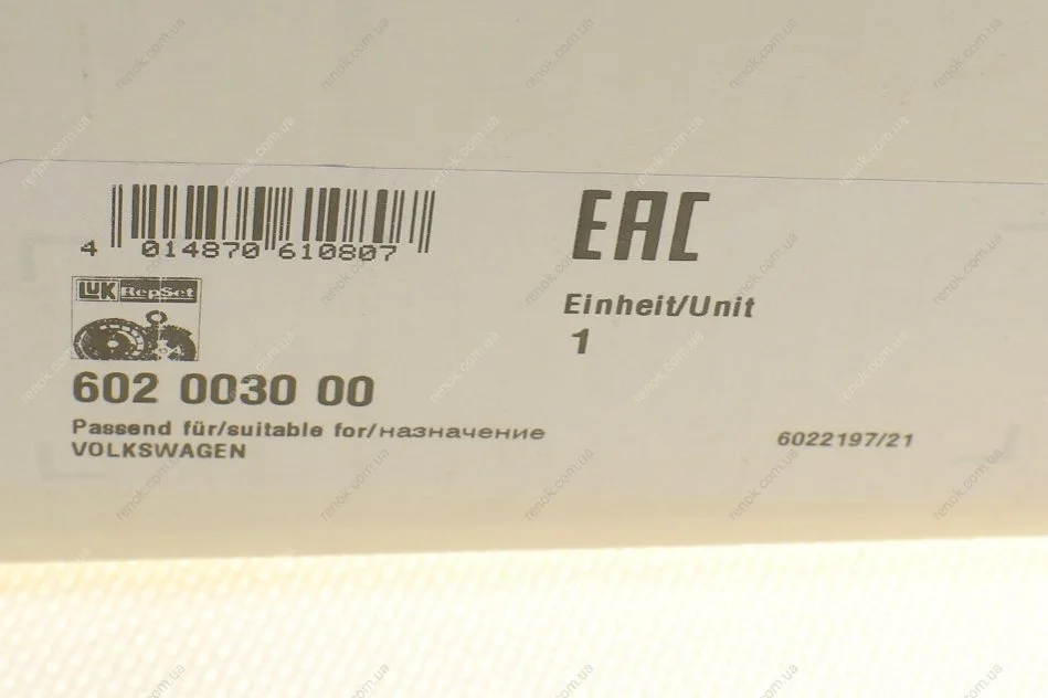 Комплект зчеплення VW Polo V 1.4 TDI 14- CUSA/CYZB/CUTA, DSG7-0AM/0CW (DQ200) LuK 602 0030 00