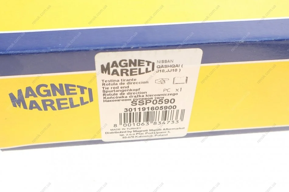 Наконечник тяги рульової (R) Nissan Qashqai/ X-Trail 07-13/ Renault Koleos 08- (SSP0590) MAGNETI MARELLI 301191605900 (48527JD01A, 48547JDA01, D8520JG00A)