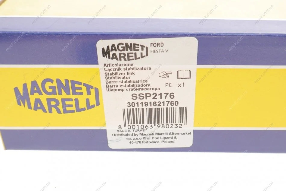 Тяга стабілізатора (переднього) Ford Fiesta V 01-10/Fusion 02-12/Mazda 2 03-07 MAGNETI MARELLI 301191621760 (1146150, DD3234170, Y125613B438AC)
