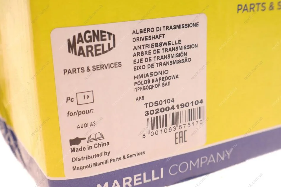 Піввісь (передня) VW Golf/Skoda Octavia 09- (R) (36x814) (TDS0104) MAGNETI MARELLI 302004190104 (1K0407272CC, 1K0407272DN, 1K0407272EK)