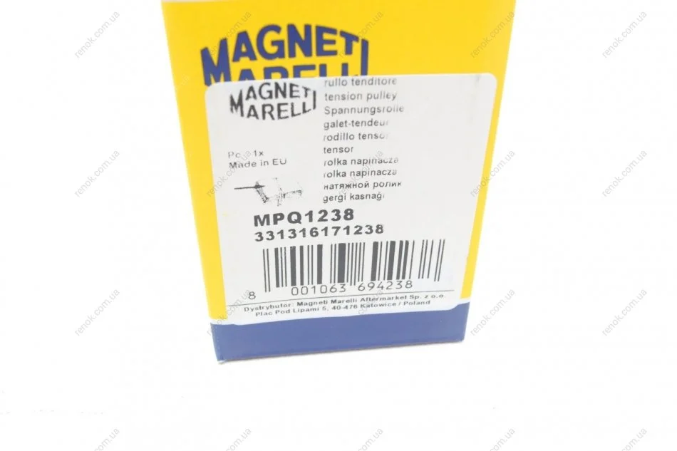 Ролик генератора Hyundai Accent/I10/I20/I30/I40 1.5-1.6 CRDI 05- (натяжний) (MPQ1238) MAGNETI MARELLI 331316171238 (252812A100, 252812A200, 252812A650)