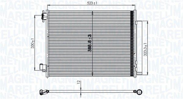 RENAULT Радіатор кондиціонера (конденсатор) CAPTUR 0.9 13-, CLIO 1.2 12-, DUSTER 1.5 15-, LODGY 1.5 13-, SANDERO / STEPWAY 1.2 13-, DACIA MAGNETI MARELLI 350203823000 (8660003626, 8660003630, 921001697R)