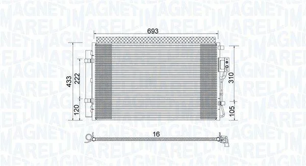 HYUNDAI Радіатор кондиціонера (конденсатор) з осушувачем SANTA FE II 2.4 10- MAGNETI MARELLI 350203978000 (976061U100, 976061U100AS)
