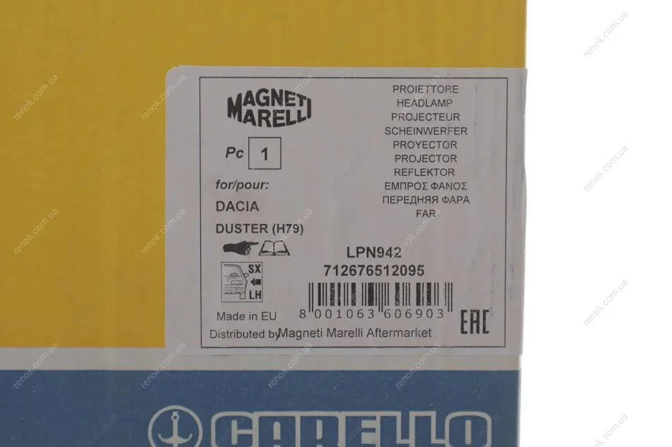 Фара автомобільна MAGNETI MARELLI 712676512095 (260601153R, 250608025R, 260608025R)