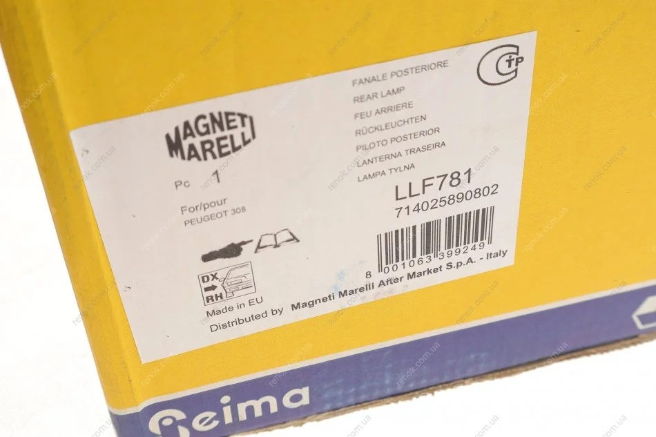 Ліхтар задній Peugeot 308 07-11 (R) MAGNETI MARELLI 714025890802 (6351CV)
