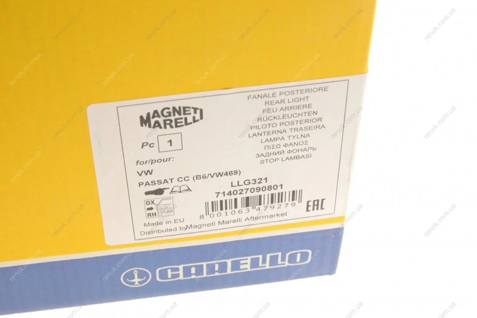 Ліхтар задній VW Passat CC 08- (R) MAGNETI MARELLI 714027090801 (3C8945096F, 3C8945096G, 3C8945096)