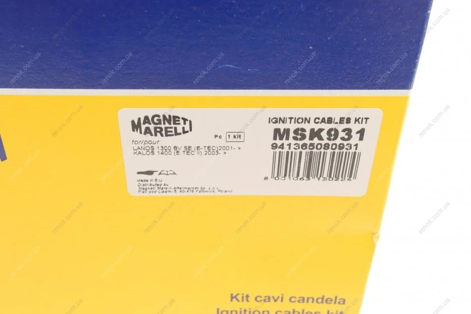 Проводи запалювання Daewoo Lanos/Kalos 1.4/1.5 97- (к-кт) (MSK931) MAGNETI MARELLI 941365080931