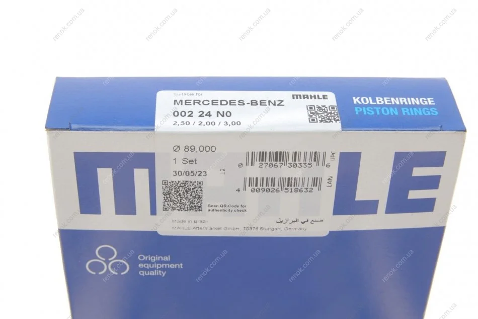 Кільця поршневі MB Sprinter OM602/208 2.9D (89.00mm/STD) (2.5-2-3) MAHLE / KNECHT 002 24 N0 (a0020302624, 0000305224, 0020302624)