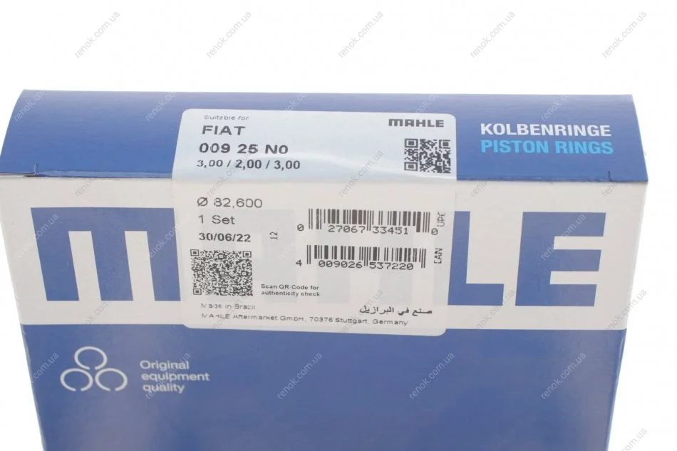 Кільця поршневі Fiat Ducato 1.9TD 89-02 (82.60mm/STD) (3-2-3) MAHLE / KNECHT 009 25 N0