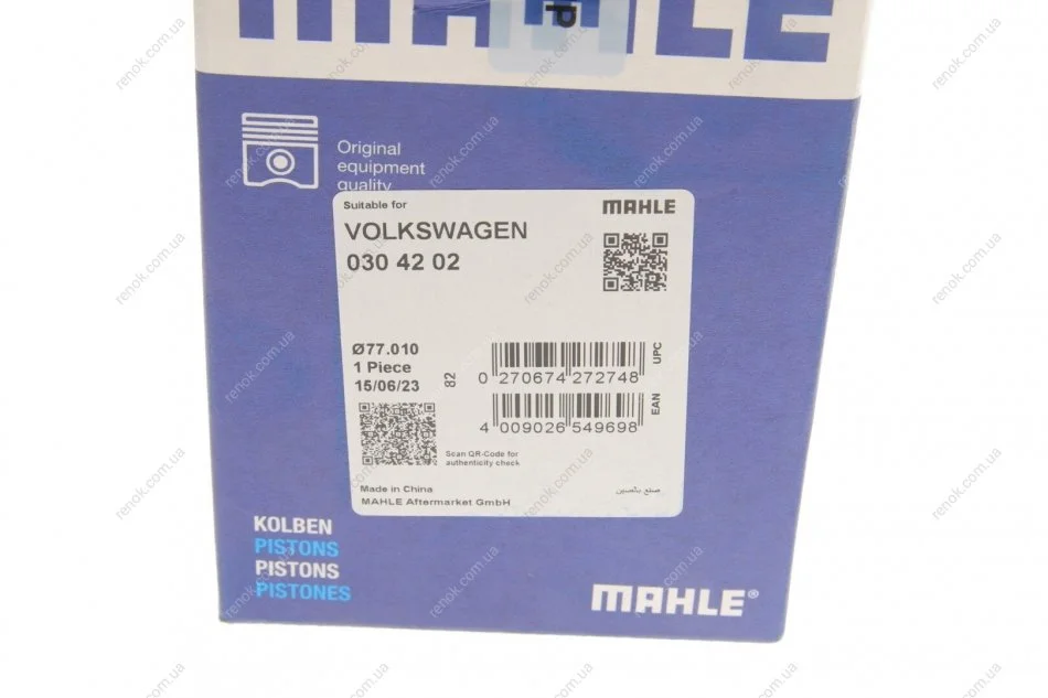 Поршень в комплекті на 1 циліндр, 2-й ремонт (+0,50) MAHLE MAHLE / KNECHT 0304202