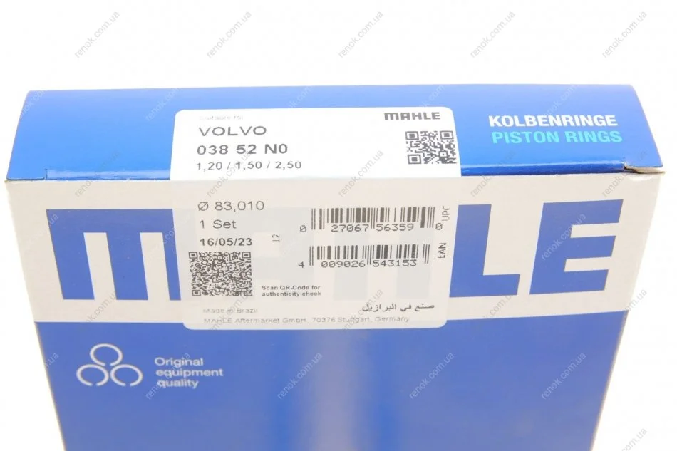Кільця поршневі Volvo 1.8 (B4184S)/2.0 (B4204)/2.4 (B5244)/2.5 (B5254) (83.01mm/STD) (1.2-1.5-2.5) MAHLE / KNECHT 03852N0 (31330245, 31330246, 31401114)