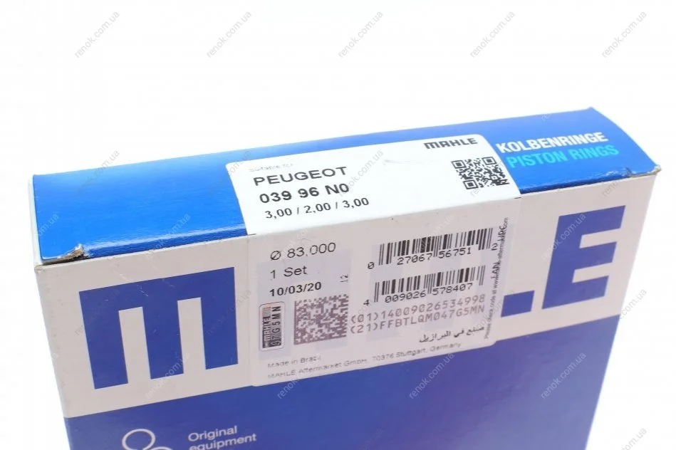 Кільця поршневі Citroen Jumper/Fiat Scudo/Ducato 1.9TD (83.00mm/STD) (3-2-3) MAHLE / KNECHT 039 96 N0