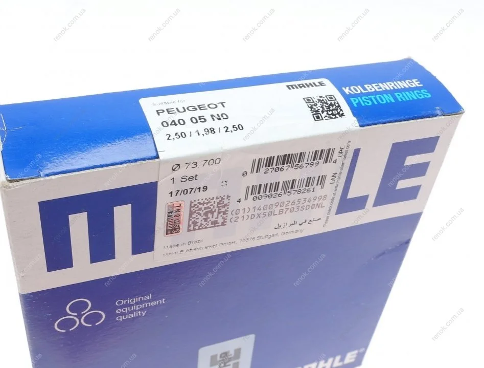 Кільця поршневі Citroen Nemo/Peugeot Bipper 1.4HDi (73.70mm/STD) (2.5-1.98-2.5) MAHLE / KNECHT 04005N0 (0640V9)