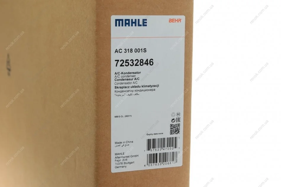 Радіатор кондиціонера MAHLE MAHLE / KNECHT AC 318 001S (2115000254, 2115000654, 2115001154)