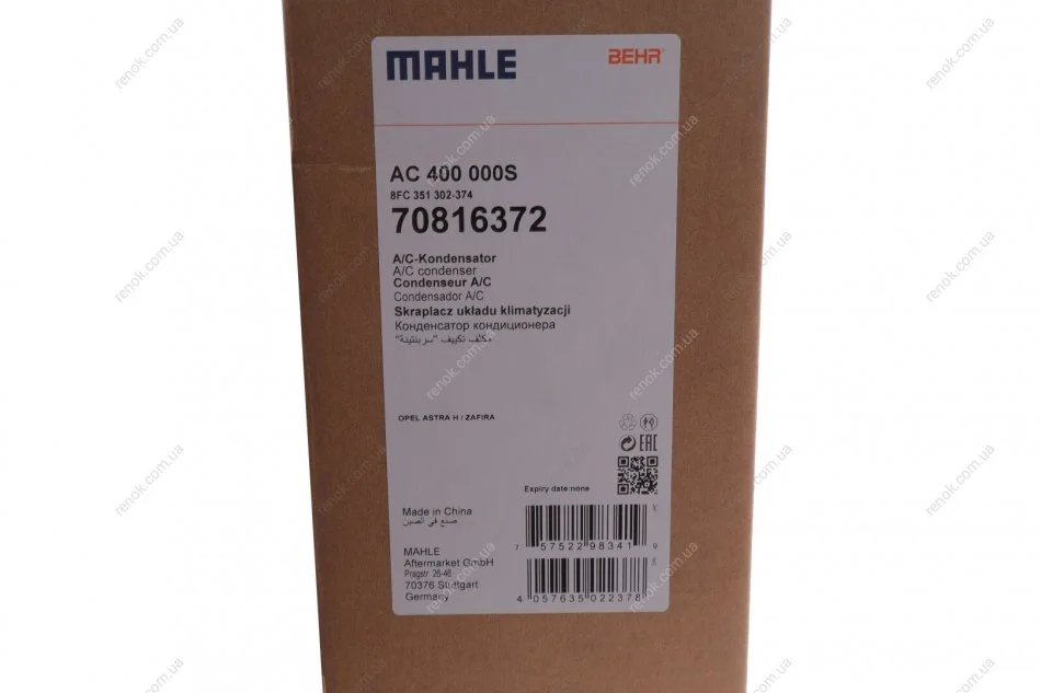 Радіатор кондиціонера Opel Astra H/Zafira 1.3-19CDTI/2.0i 04- MAHLE / KNECHT AC 400 000S (13300339, 6850237, 93182213)