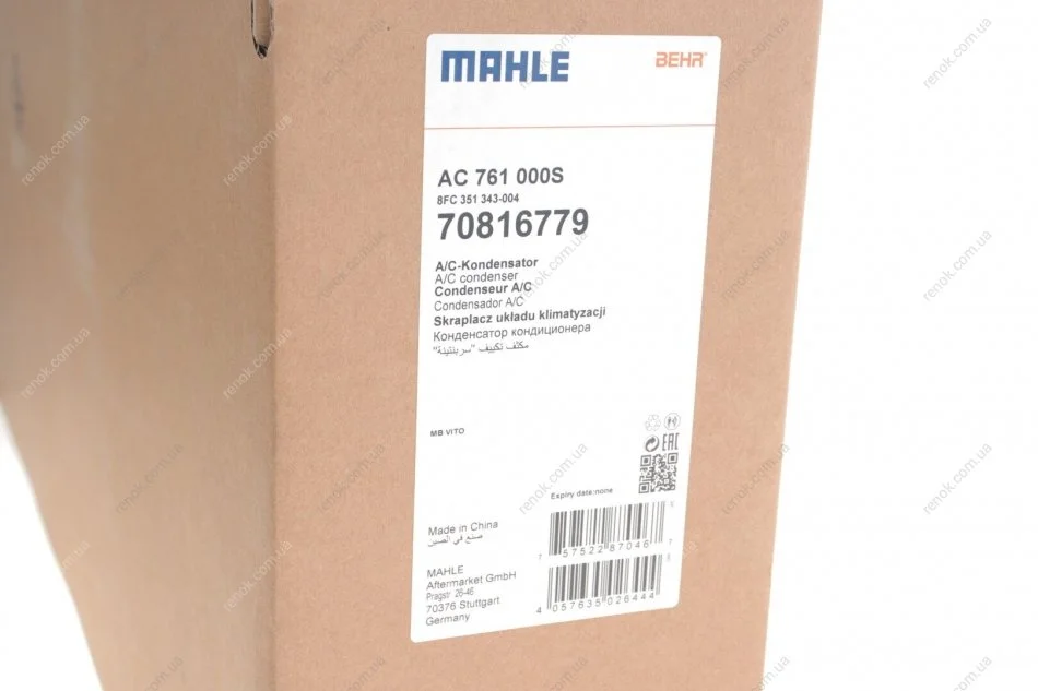 Радіатор кондиціонера MH MAHLE / KNECHT AC 761 000S (6398350270, 6398350370, A6398350070)