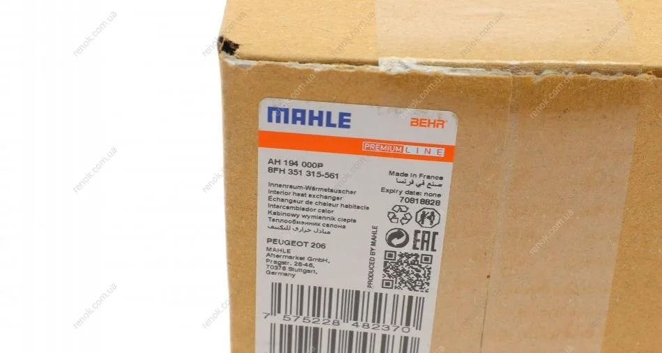 Радіатор пічки Peugeot 206 1.1-2.0 00- MAHLE / KNECHT AH 194 000P (6448Q2)