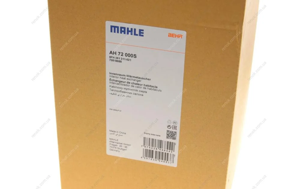 Радіатор пічки MAHLE MAHLE / KNECHT AH 72 000S (1J1819031B, 1J1819031, 1J1819031A)