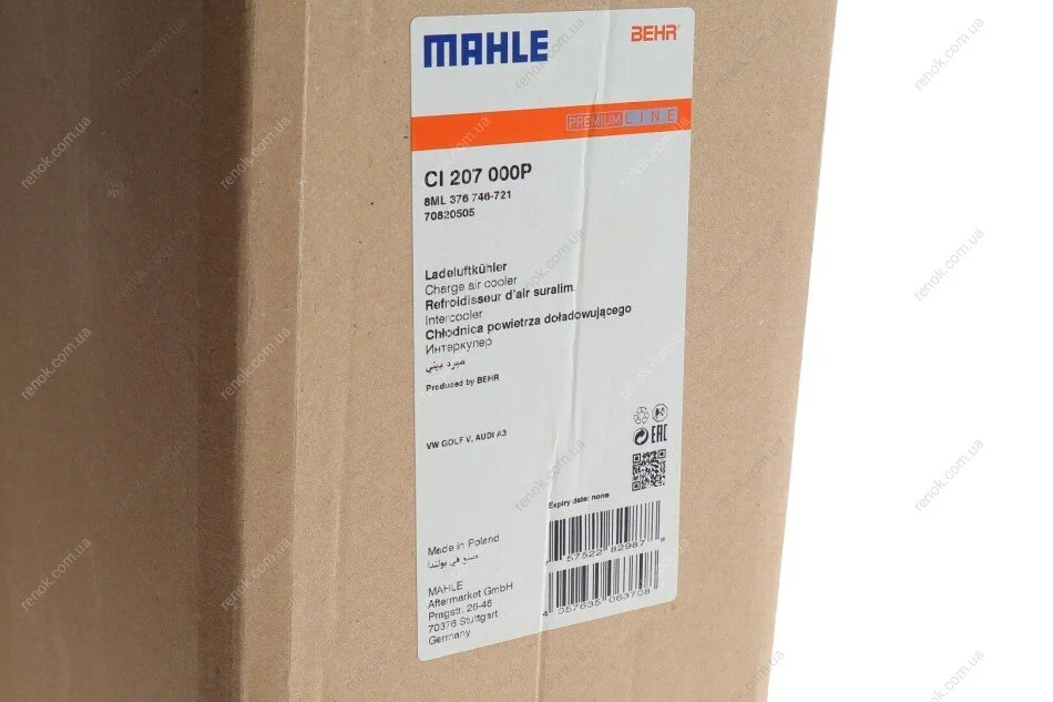 Радіатор інтеркулера VW Caddy III/IV 1.6/2.0 TDI 10- MAHLE / KNECHT CI 207 000P (5C0145803E, 1K0145803BM, 1K0145803CA)