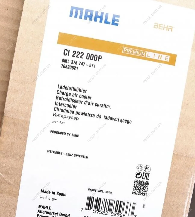 Радіатор інтеркулера MB Sprinter 311CDI/411CDI (OM646) (422x690x26) MAHLE / KNECHT CI 222 000P (a9095010000, 9095010000)