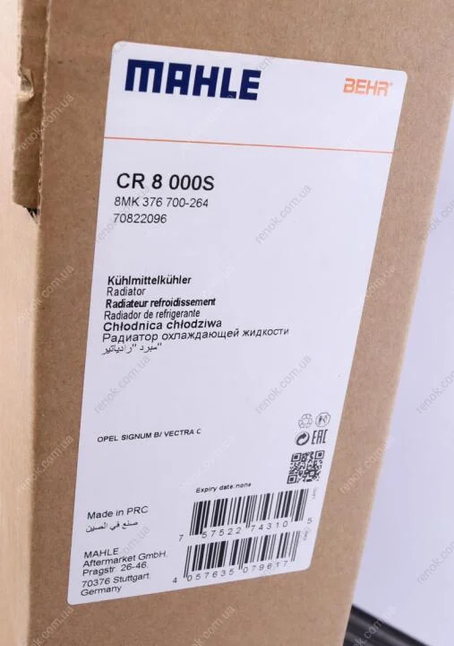 Радіатор охолодження Opel Vectra C 1.8 05-08 MAHLE / KNECHT CR 8 000S (51773281, 24418340, 95524869)