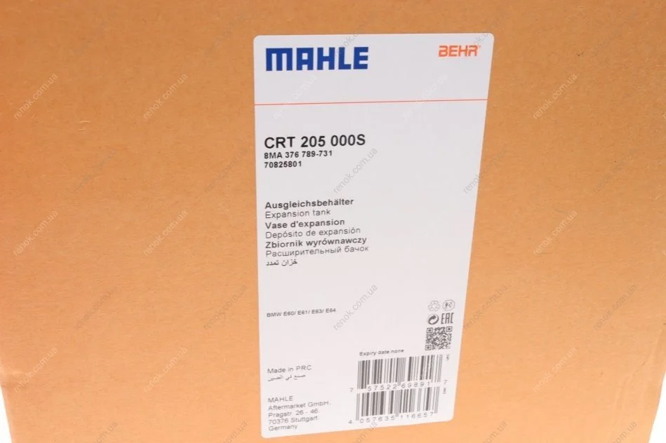 Бачок розширювальний BMW 5 (E60) 2.0-4.5i 01-10 MAHLE / KNECHT CRT 205 000S (17137519219, 17137542986, 7519219)