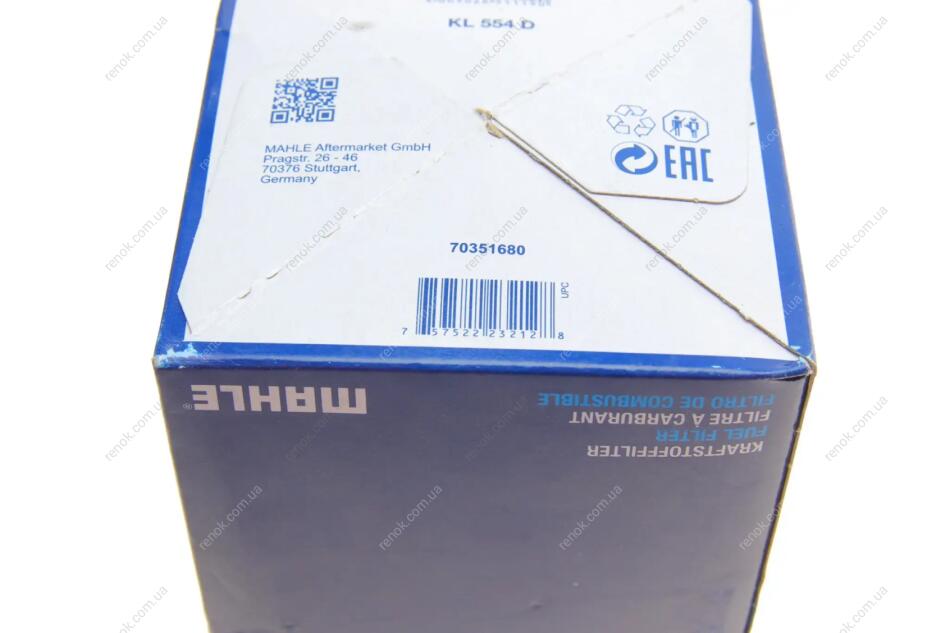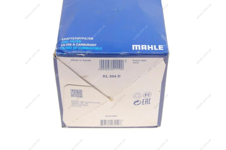 Фільтр паливний Audi A4/A6 2.0TDI 04- MAHLE / KNECHT KL554D (1J0127401A, 8E0127435A, 8E0127401D)