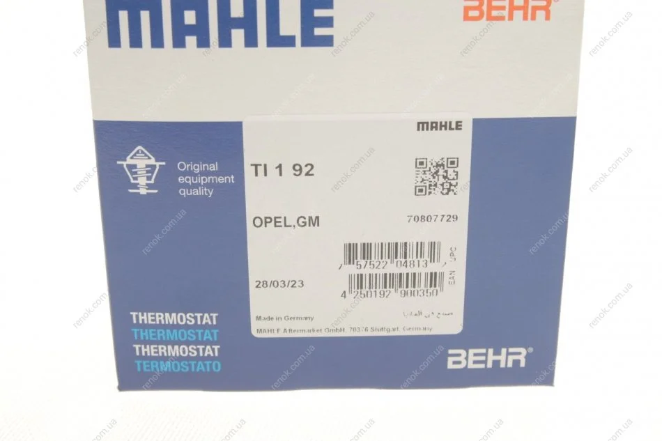 Термостат, охолоджуюча рідина MAHLE MAHLE / KNECHT TI 1 92 (1338436, 97362894, 97123161)