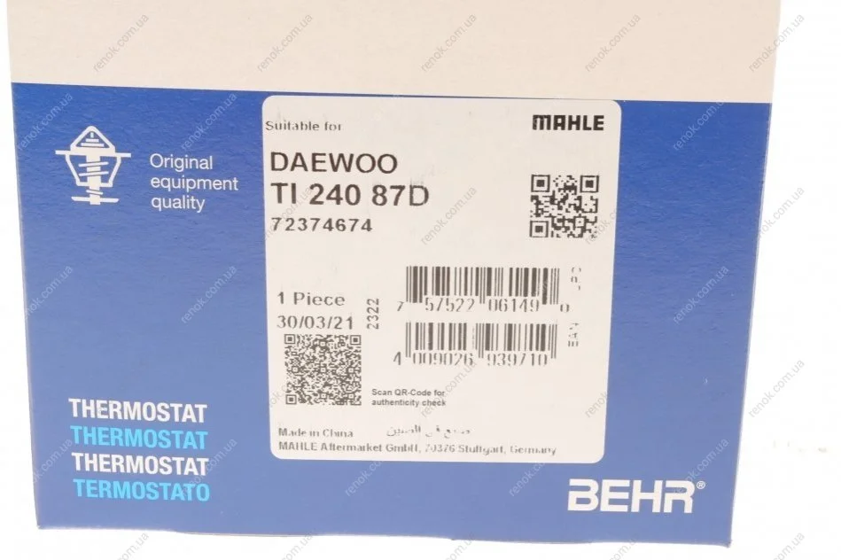 Термостат Chevrolet Aveo/Daewoo Lanos/Nubira 1.4/1.6 (87°C) MAHLE / KNECHT TI 240 87 D (96460002)