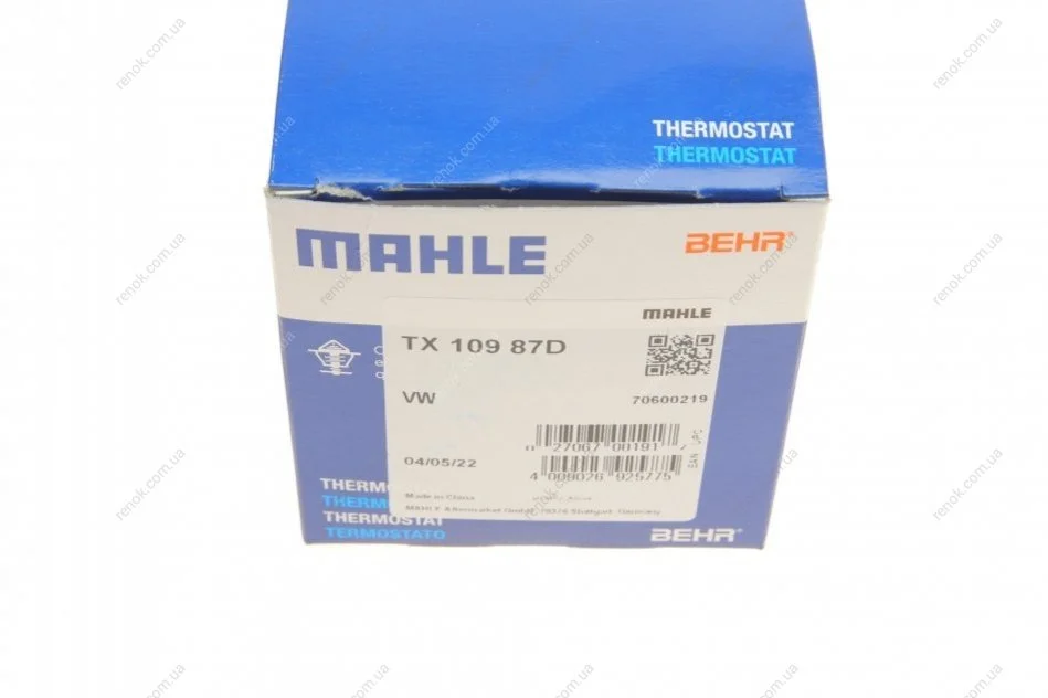 Термостат, охолоджуюча рідина TX 109 87 D MAHLE MAHLE / KNECHT TX 109 87D (03G121111A, 03G121113A)