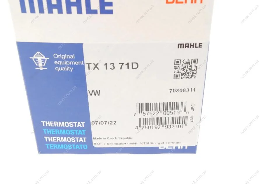 Термостат, охолоджуюча рідина MAHLE MAHLE / KNECHT TX 13 71 D (nne121113)