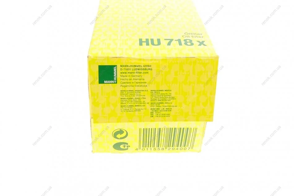 Фільтр масляний Hyundai Tucson/Kia Sportage 2.0 CRDi 04- MANN HU 718 X (s2632027001, 2632027000A, 2632027200)