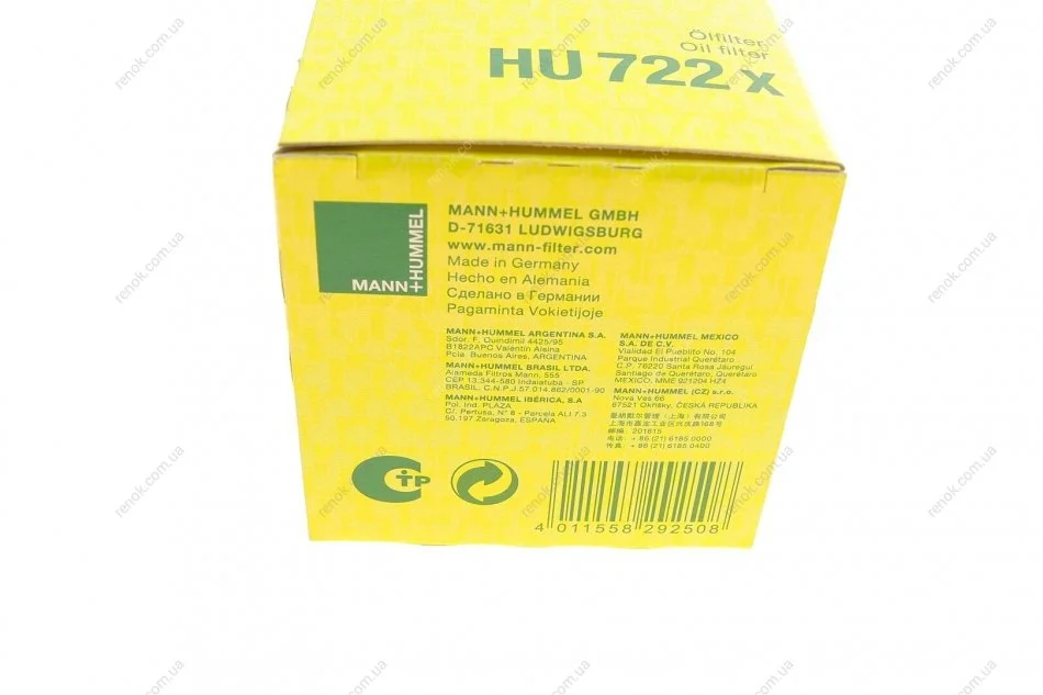 Фільтр масляний BMW 3 (E46)/ 5 (E60/E61) 2.0 D 03- M47/N47 MANN HU 722 X